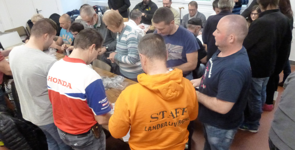 En début d'après-midi, la troupe s'étoffe. De nombreux bénévoles du Moto-Club nous rejoignent et nous pouvons affiner les plannings en fonction des engagements de chacun face aux diverses missions à assumer …